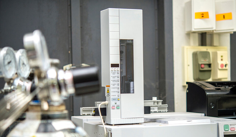 With gas chromatography (GC) with FID and ECD, and ultra-high performance liquid chromatography (UHPLC, formerly HPLC, same instrument with higher internal pressure), we detect and quantify even trace levels of compounds for unmatched clarity and precision.